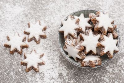 Zimt und Mandeln vorsichtig unterrühren. Teig ausrollen und Sterne ausstechen.